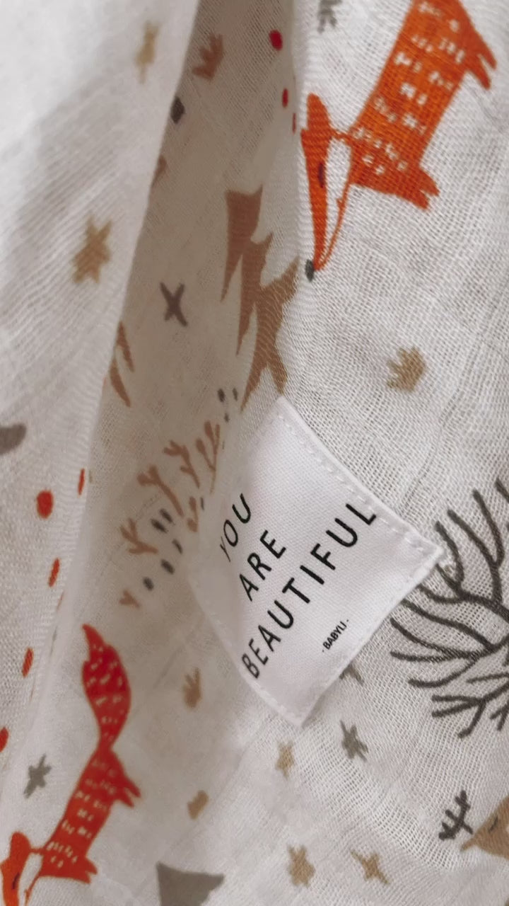 Musselindecke, Musselintuch Waldtiere 120x120