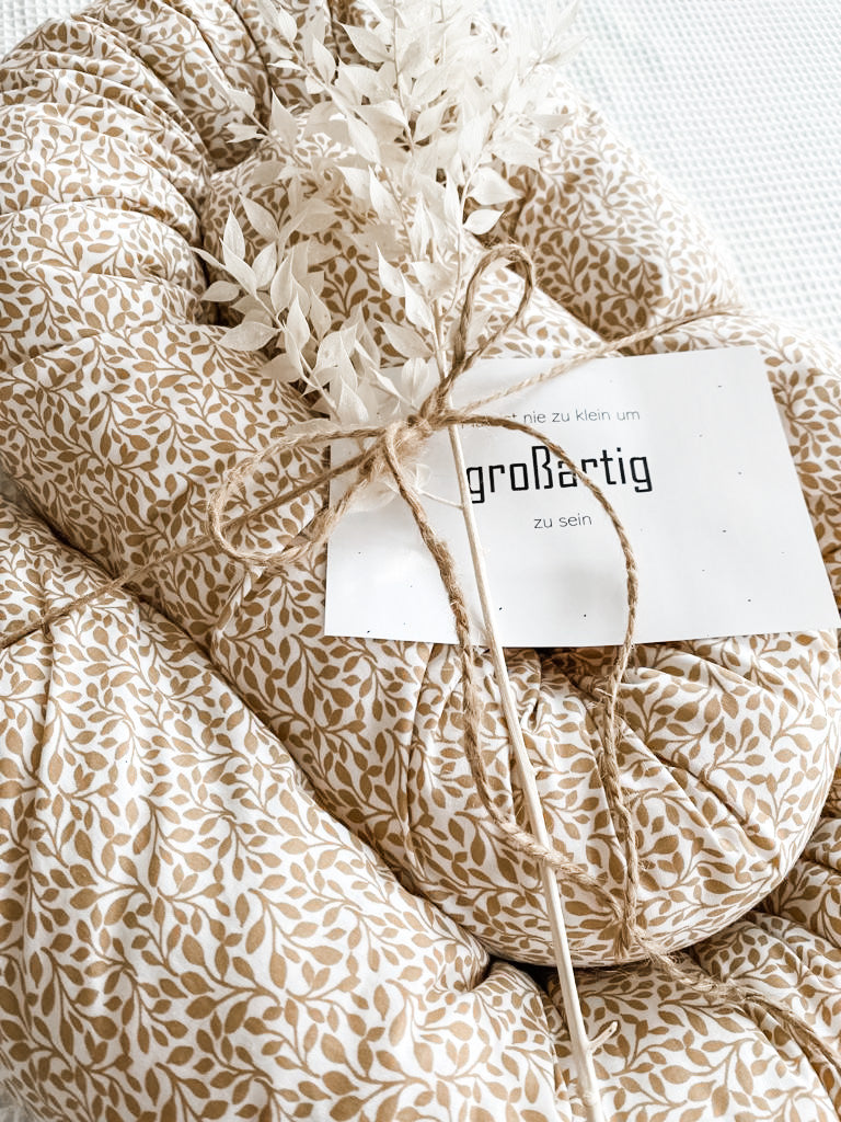 Alle Krabbeldecken sind von Hand gefertigt und mit einem 5 cm dicken Volumenvlies gefüllt. Das gibt deinem Baby ein angenehmes Gefühl beim spielen und die Welt entdecken!